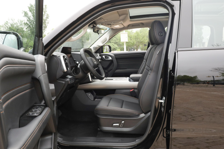 座椅材质两款都是仿皮,触感都不错。领睿的座椅填充物偏柔软,包裹性适中,长途开车不会觉得累,主驾驶电动调节能轻松找到合适姿势;大狗的座椅贴合度更高,支撑性更强,尤其是腰部支撑调节,跑颠簸路段时能有效缓解疲劳,后排座椅纹理精致,还加了橙色缝线点缀,视觉上更有活力。